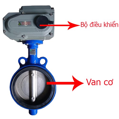 Van bướm đóng đóng mở bằng điện cấu tạo gồm thân van và động cơ: