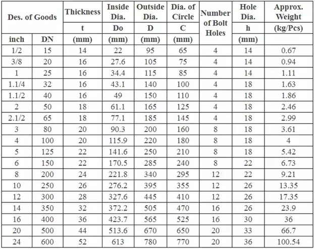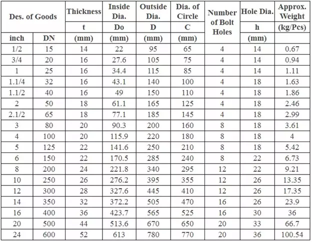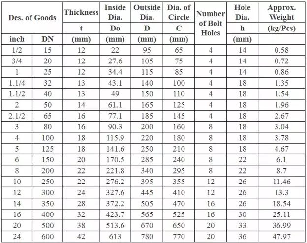 Dựa vào các thông số kỹ thuật mà tiêu chuẩn của mặt bích được xác định độ dày, đường kính ngoài, đường kính trong, tâm lỗ, khoảng cách lỗ, sai số, kích thước của lỗ… trong quá trình chế tạo ra mặt bích.