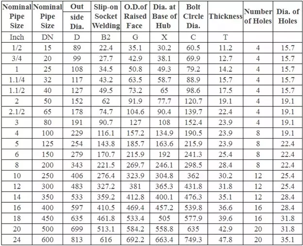 - Kích thước mặt bích theo tiêu chuẩn ANSI B16.5 class 150